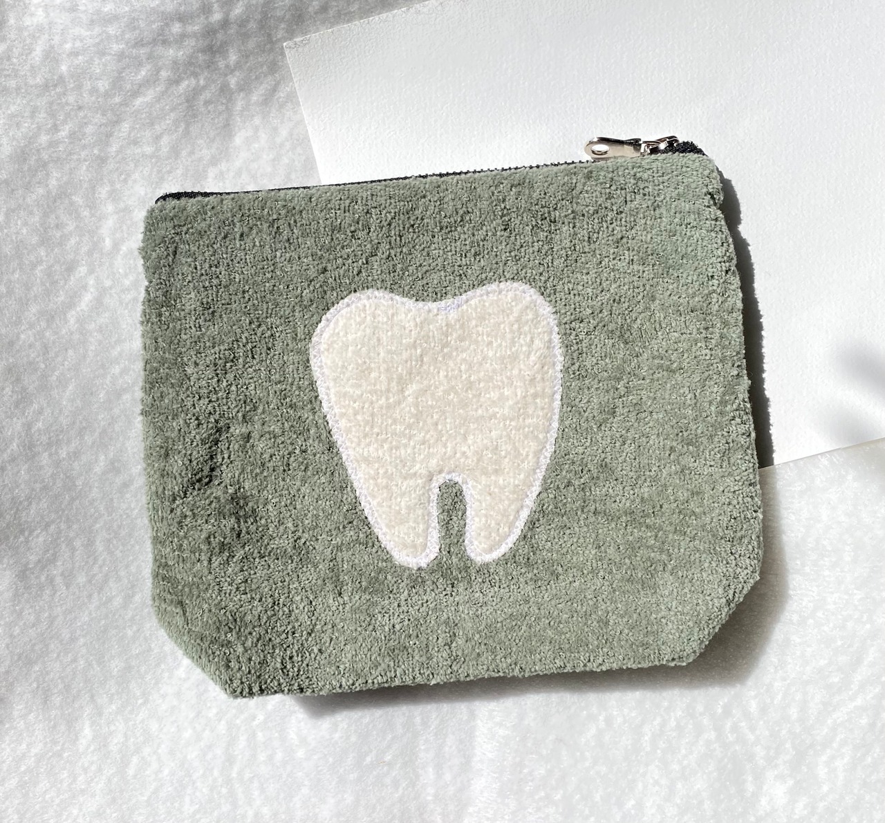 ふわふわもこもことしたパイル生地で出来た歯のポーチを作りました