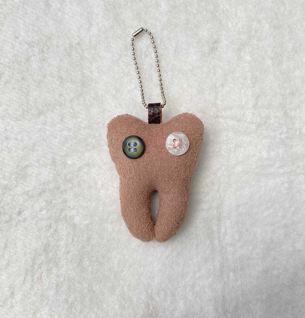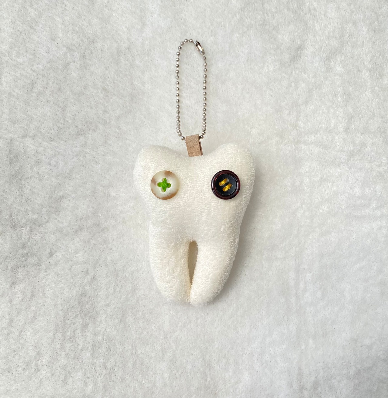 手ざわりの良いパイル素材(タオル素材)でできた、歯のかたちのキーホルダーです。